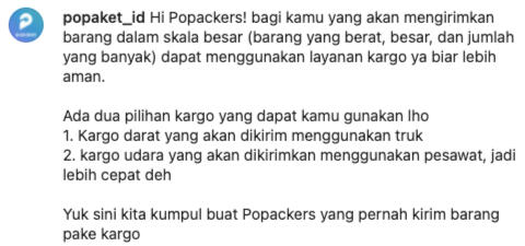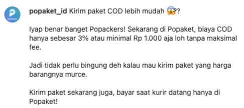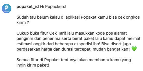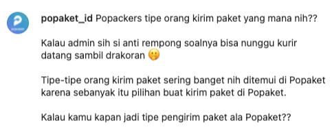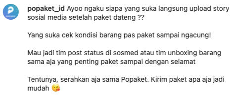 Popaket is a digital logistic platform that aims to simplify the package delivery experience by providing wide options for the courier.One of my responsibilities is to manage social media. Before the content was uploaded in Instagram, I did competitor research > creating content plans > creating copywriting